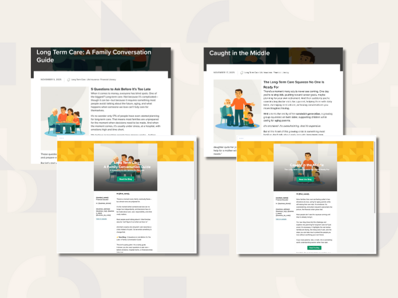 Nếu có một chủ đề mà các gia đình đang rất cần được hướng dẫn nhưng lại ít khi biết cách bắt đầu, thì đó chính là chăm sóc dài hạn. Nhu cầu đang tăng lên, chi phí cũng tăng theo, và sự nhầm lẫn xung quanh vấn đề này cũng tăng vọt. Đó là lý do tại sao chúng tôi đã tạo ra các blog và mẫu email về Chăm sóc Dài hạn sẵn sàng sử dụng cho bạn.
